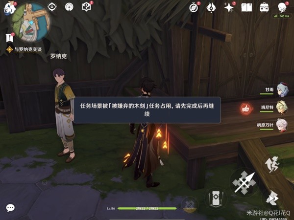 到这里的时候提示,任务场景被(被嫌弃的木刻)占用,相同的小伙伴下面链接先去做木刻活动。