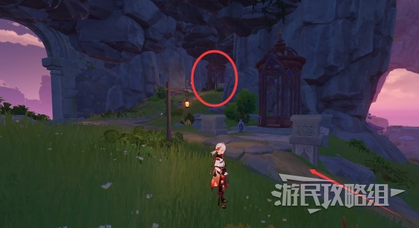 帐篷后面的岩壁下方有个洞,先清理洞口的几只史莱姆,然后走到头【轻敲栅栏】触发剧情。