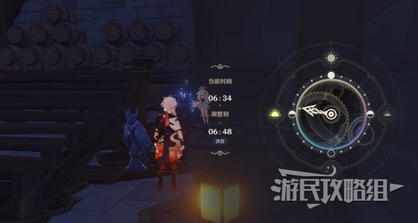 对话完毕后,在左上角派蒙菜单处将时间调整到第二天(需要刷新地图,比如传送到其他位置、进入/离开尘歌壶等)。