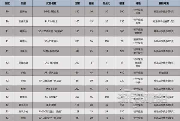本梯度排行的强度依照武器的性能,解锁时间、实际表现等方面进行排序。