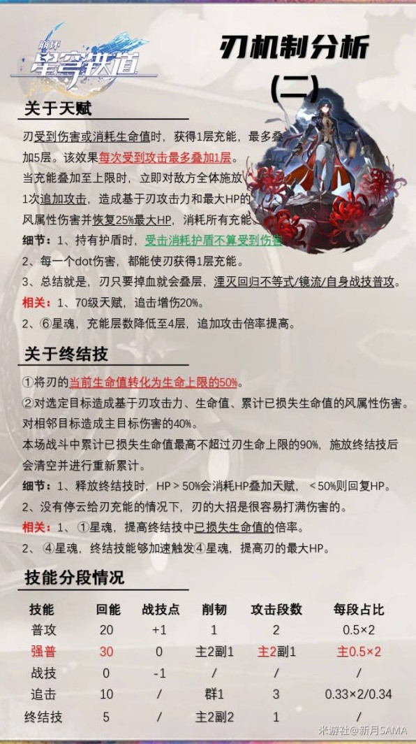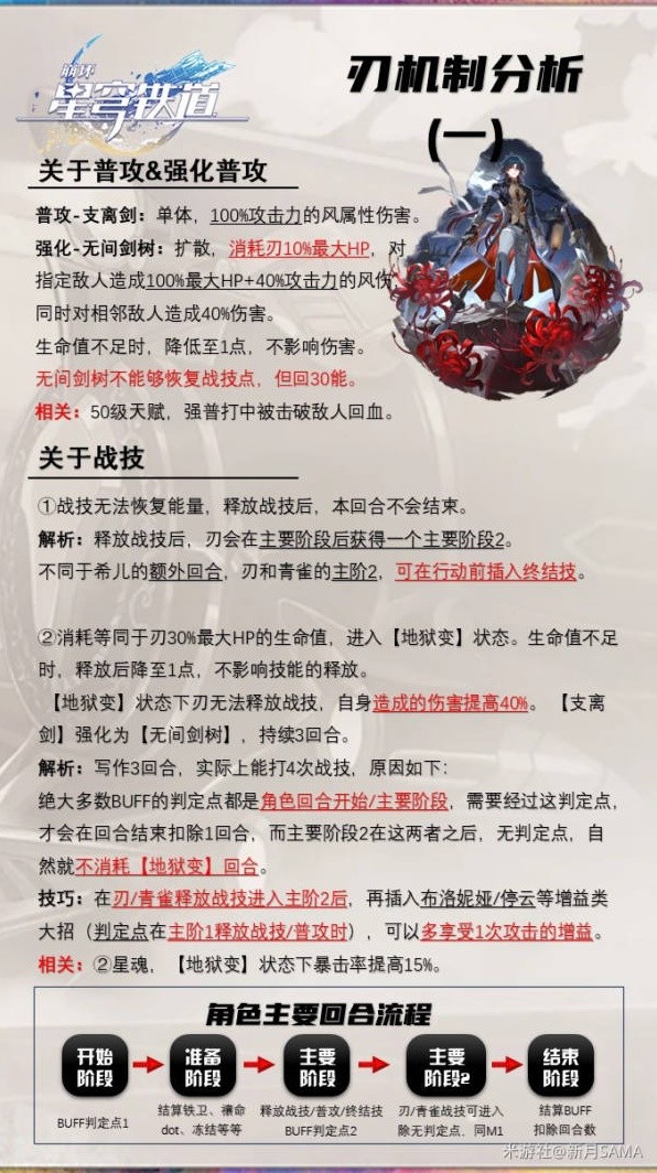 刃的机制最重要的地方在于战技的不会结束回合(同青雀),图里简单的解释了一下,如果有开拓者不理解的话,我可以单开一帖详细解读一下星铁的回合机制。