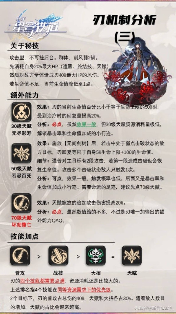 加点优先级:普攻>战技>大招=天赋(建议全部拉满)