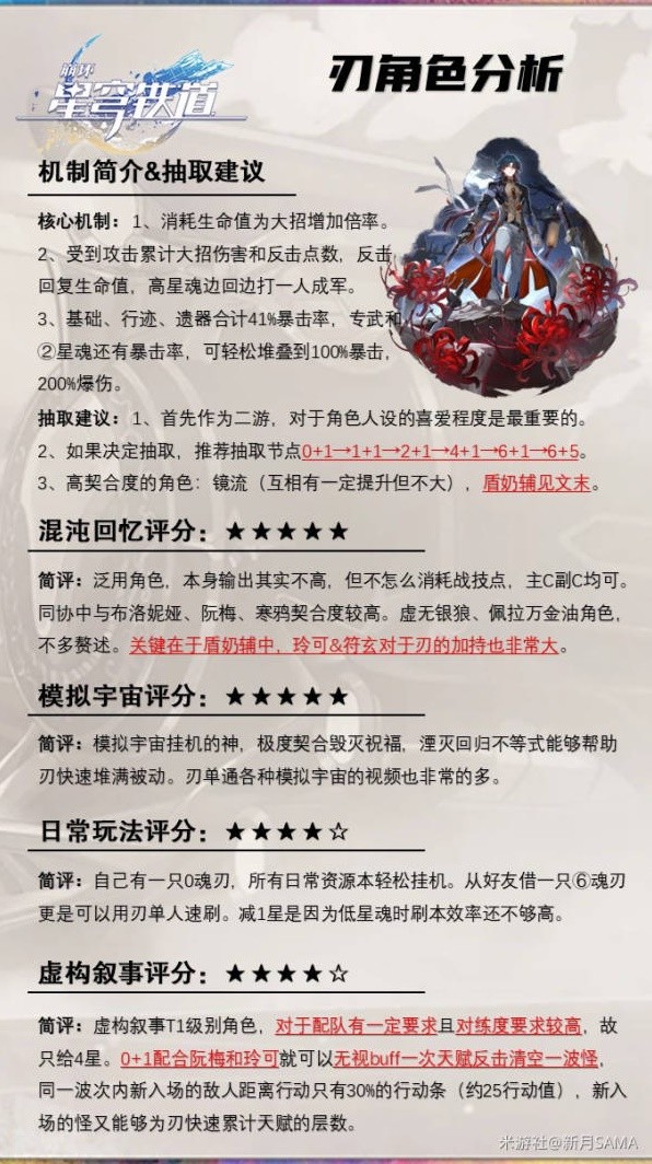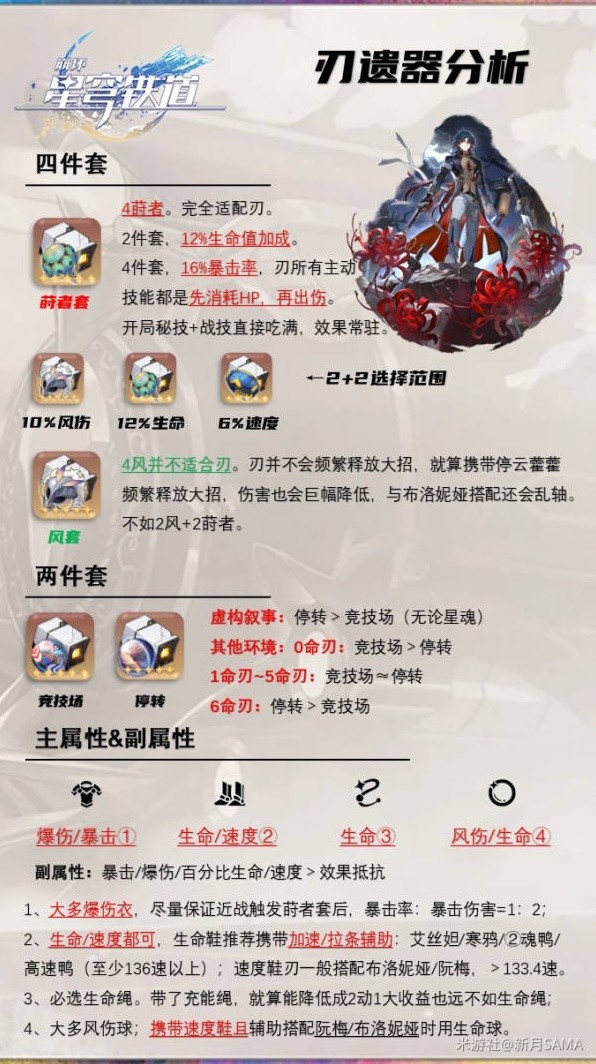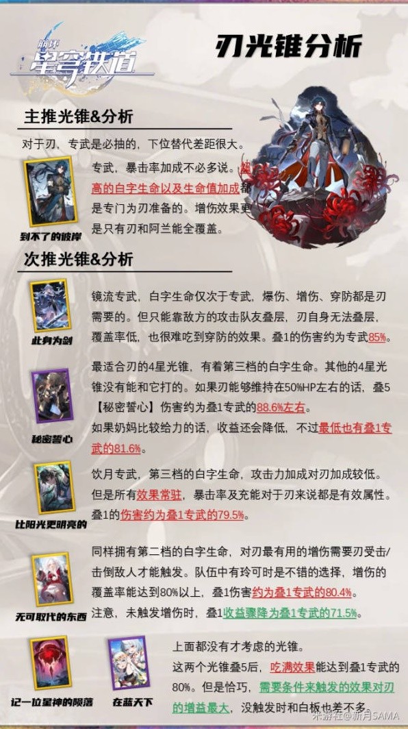 《崩坏星穹铁道》中刃有着很特殊的机制,会消耗生命值进行作战,那么他在培养的过程需要注意什么呢,下面请看“新月SAMA”带来的《崩坏星穹铁道》刃光锥遗器搭配教程,希望能够帮助大家。