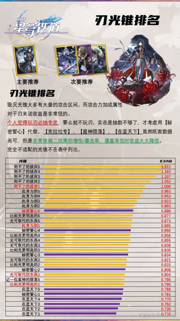 对于刃来说,专武非常重要,不仅加成高而且稳定,其他光锥完全无法代替专武。