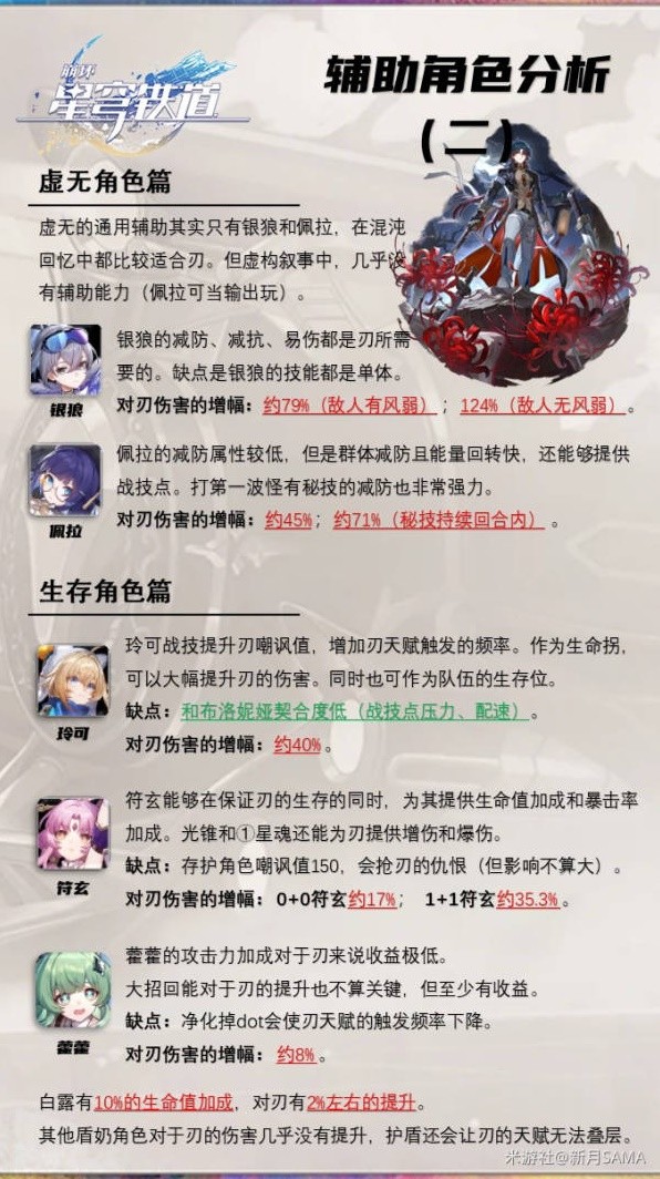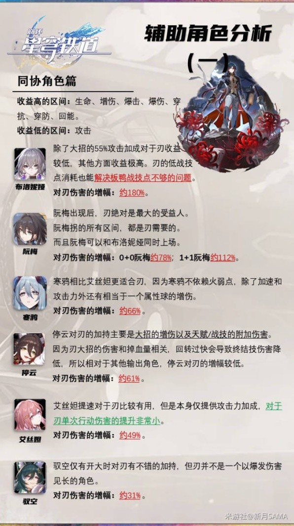 以下各角色的提升率均是在刃+该角色双人的情况下计算的。