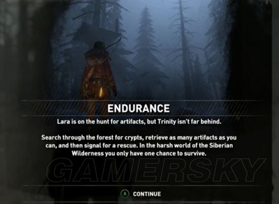 这个DLC被称作Endurance Mode(耐力模式),作为《古墓丽影崛起》的重复游玩内容“探险队”的一个额外模式加入,在这个模式中,玩家依然要在一些特定的情境下同时对抗严苛的自然环境与圣三一的追兵,唯一不同的是,这一次,玩家需要考虑劳拉的体温和饥饿程度。