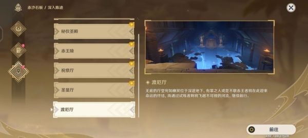 渡厄厅在《原神》须弥沙漠的地图中,是赤王陵的一部分,打开赤王陵后就能看见,在赤王陵的地下部分。下面请看由“LINK路莜”带来的《原神》渡厄厅进入方法,希望对各位玩家有帮助。