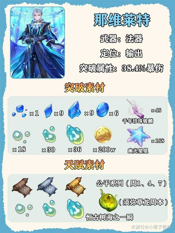 《原神》4.5版本下半期复刻了五星角色那维莱特,那么在新的版本下那维莱特要怎么培养呢?请看下面由“小橙子猪弟”带来的《原神》4.5那维莱特出装选择与阵容推荐,一起来看看吧。