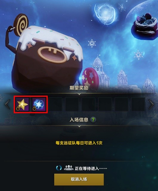 完成玩法后可以获得【芙蕾雅的小星星】和【芙蕾雅的冰晶】,使用这两种特殊货币冒险家们可以前往游戏内活动中心兑换丰厚的奖励,每支远征队每日可进入1次,入场次数每天上午6点初始化。