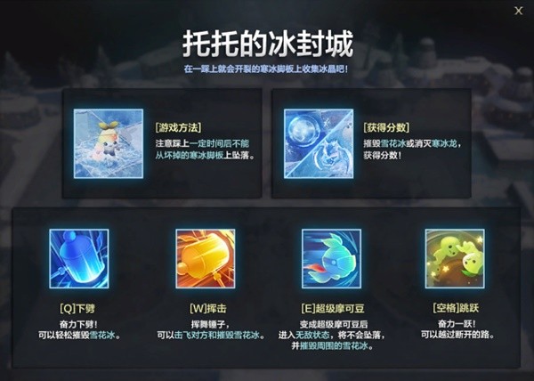 具体的玩法冒险家们可以在活动开启后前往冰封城内体验,化身摩可豆威震四方吧!