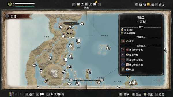 有个简单判别的方式如下图,把图片缩放到一定比例后,将鼠标移至该岛,会显示需求物资,通常根据需求物资拿去该停泊处卖即可,大致准确。