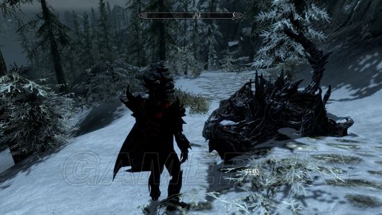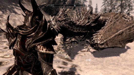 如果你实在没办法在它飞走前进入控制台,也没关系。使用龙破把它从天上吼下来就行了。然后切换第一人称视角对准它。好了,但是现在奥杜因还是相当危险的,你此时带它进城就是一场生灵涂炭。你需要再次打开控制台,选中它,输入setav aggression 1 这样它就不会主动屠城了