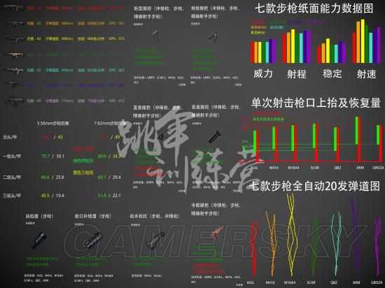 除开数据上的统计,玩家们更关注的在于武器的后坐力表现上,下面小编对七款步枪弹道做出了统计。