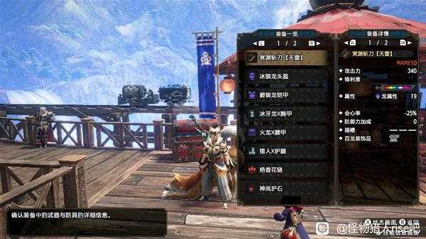 拥有全套物理输出技能满会心和一级匠,用到了冥渊龙胸所以白送了一级怨恨和连击。连击对于太刀非常好触发,相当于至少白送了5攻击5属性,护石同上。武器没强满是因为我只打到怪异2