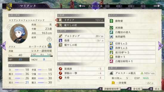 基本上就是往剑士的方向在养的,然后能顺便当奶,基本上能坦能输出 能奶,本身技+剑必杀+10加上骑士团还有高必杀武器能快速砍倒大部分敌军,倭刀+真的神器。