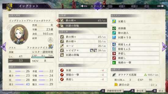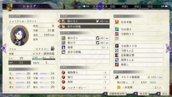 中间那个龙骑是第一部末才转的,根本没有用到几次,定位上和死宅差不多,高移动高速的飞弓,主要负责点杀和不死队火力覆盖,用剑也能当一个回避坦,但双防比较低,一般我不敢让他做这种事,还有神技合围箭能锦上添花,但学到的时候比较晚。