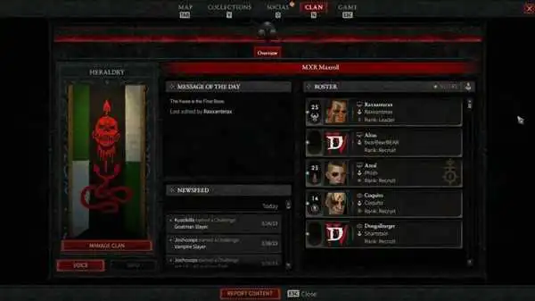 创建后可以进入社群的登陆页面。 社群最多可以有 150 名成员,并且同一帐户中的所有角色(包括硬核模式)都属于同个社群。