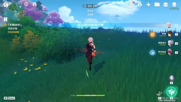 挑战开始后,屏幕正上方会显示倒计时以及距离手鞠的距离,需要我们一边走一边根据显示的距离调整方向、高度等,最终找到手鞠即可完成挑战。