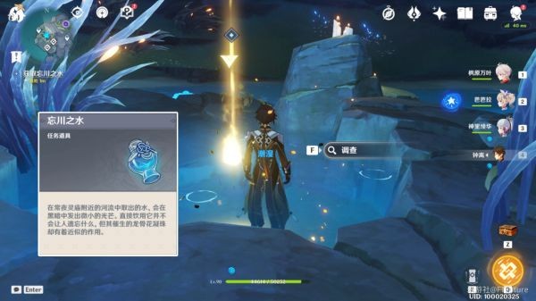 将深海龙蜥全部击败,屏障就会自动解除,我们靠近中央的黄色光柱交互调查,即可获得忘川之水。