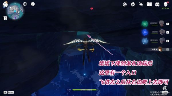 在触发这个任务以前,我们需要先来到下图所示位置的地下山洞中,路线如图所示: