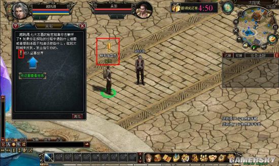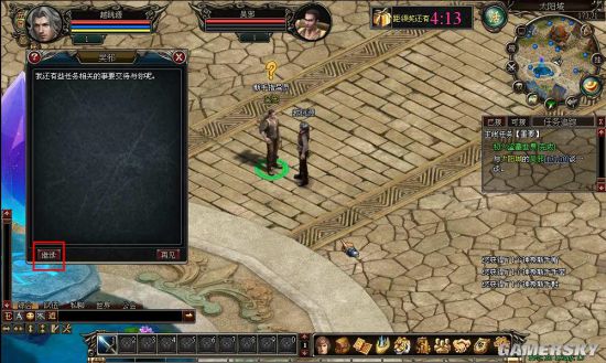 当玩家达到任务接受条件时,NPC的头上会亮起黄色的叹号,提示玩家可以接受任务。NPC与其对话,在对话框中可看到任务列表,任务列表中可接的任务名称前面会显示一个黄色的叹号,任务列表中的任务名称查看任务详情。