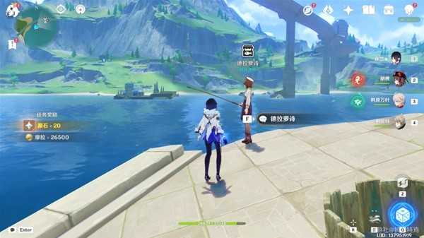 (3)回到岸上与德拉萝诗对话即可完成任务,奖励原石*20。
