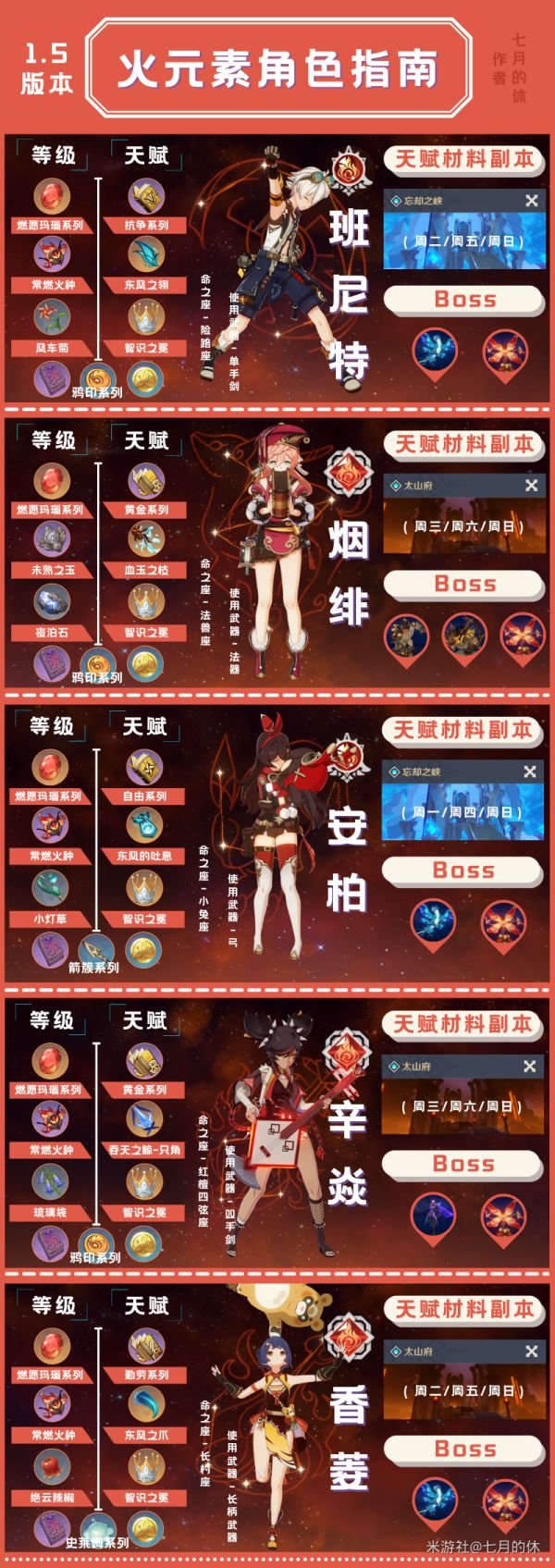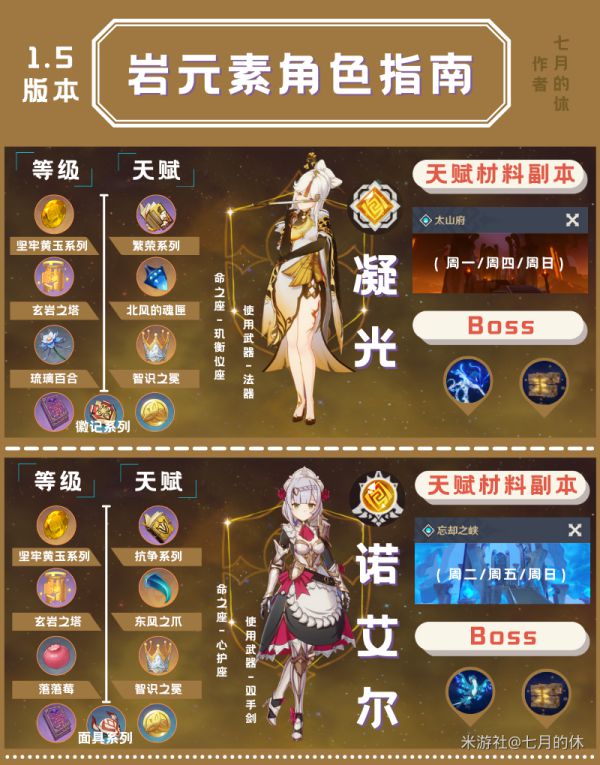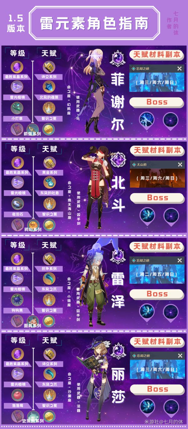 正文 《原神》1.5版全四星培养素材一览 闪亮小编 /2025-07-02 10:31:24 /25 浏览量 0702 《原神》1.5版本一共有18名四星角色,他们需求的材料上各有不同,想要更加直观了解全部四星角色突破材料的玩家请看下面“七月的休”带来的《原神》1.5版全四星培养素材一览,希望能够帮助大家。 有兔爰爰,雉离于罗。 -- 展开阅读全文 --