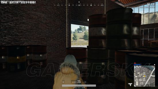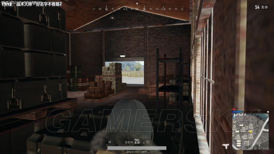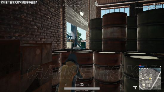 仓库中具有较多的障碍,玩家可以利用这些障碍掩护自己进行攻击。该处的油桶较高,玩家可以躲在油桶后面,卡视角看到敌方玩家随后进行射击,敌方玩家绝对不会发现该处位置。