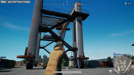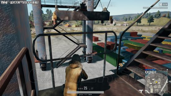 卸货架每层的转角平台较大,玩家需要下蹲,尽可能的把自己的身体隐藏在平台后部,再对敌方玩家进行攻击。需要注意的是由于脚手架更高,大家如果没有狙击枪,高倍镜,不建议玩家在此进行攻击,优先把敌方入侵的位置告知队友即可。