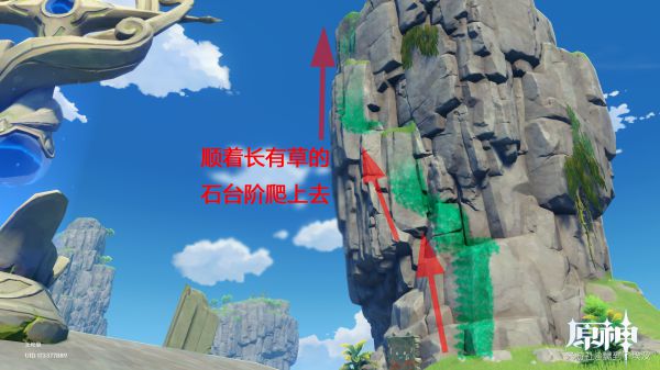 方法一:直接攀爬上去,顺着有苔藓的石台阶攀爬更加方便 (只要体力值是满的,爬上这座山顶体力完全够用,亲测) 。