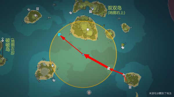 在找完第二处的半截船之后,地图上会显示一个追踪的任务区域(黄色的大圆圈),大家先不要直接去圆圈的中心,当前任务一共需要寻找3处“船上运送的东西”,圆圈的西北角、圆圈的中心、圆圈的东南角各一处。前两次的寻找结果必定是“什么都没有”(前两次寻找的地方没有东西),最后一次找到的才有宝箱。