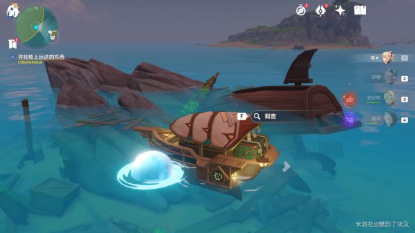 到达上图所标注的三个点位之后会看到水面上露出来的石头和沉船,旁边会有一个泡泡,按下调查就算寻找完成。