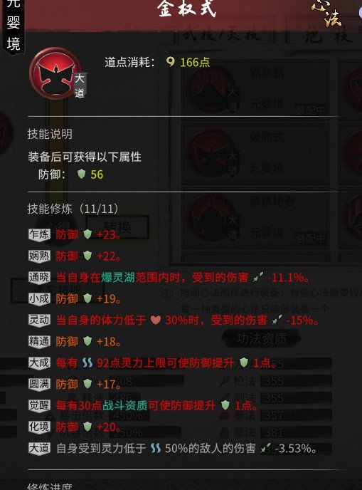 算到这里我们在把这本功法总防御加一下。175+64+106=345.跟加成的数值346差距1.别问我这1点防御哪里来的。。。。我也不知道了。这是我算的最接近的公式。