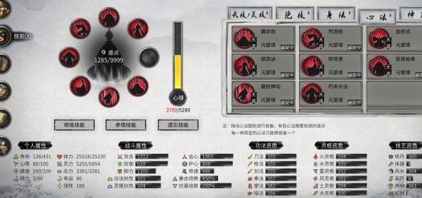 最高功法资质掌法381+攻击力1312+防御力【这里的防御是原有面板防御+带上这本功法(不计算功法内战斗资质转换后的防御)原面板裸烦防628+功法带来的防御175+64=867】+功法抗性311+灵根抗性304=3175这个3175就是战斗资质!在÷30=105.8约等于106。