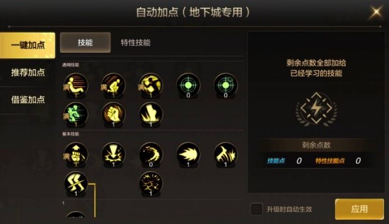 懒人党可以直接使用游戏内的【一键加点】功能,后续根据自身习惯再调整。