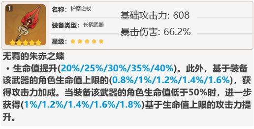 护摩之杖:高额暴伤加成,被动一般,对于罗莎莉亚的加成不大不压血不如和濮鸢的22.4%攻击力加成。
