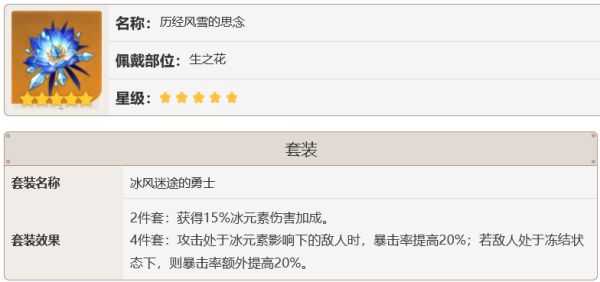 圣遗物推荐冰套:省去不少叠不高暴击的烦恼。词条推荐攻击/充能沙,冰伤杯,暴伤头,副词条双暴>大攻击≈充能。