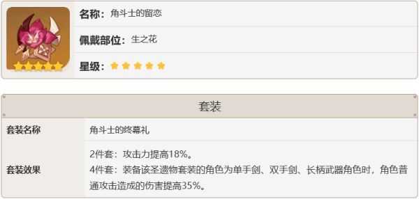 角斗士:提高攻击和普攻伤害。词条推荐攻击/充能沙,冰伤杯,暴击/暴伤头。副词条双暴>大攻击≈充能。