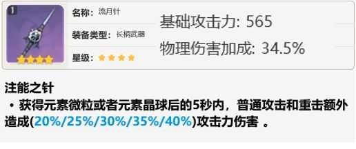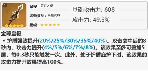 贯虹之槊:配合岩辅助获得大量攻击力加成,(缺点容易稀释,且罗莎莉亚本身突破加攻击)。