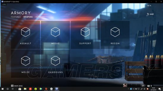 首先点开图中的ARMORY,然后会进去一个好特么炫酷的界面,不要管他,直接点左上的WEAPONS,就会进去下个界面。6个选项分别是突击兵,医疗兵,支援兵,侦察兵,近战武器,和手枪。