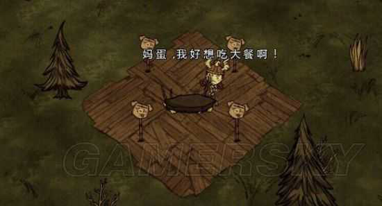 3、靠近猪王和猪村,但不要离太近(满月一群疯猪追你一夜的感觉很酸爽!)以便后期过剩的怪物肉找猪王换金子和刷猪皮。