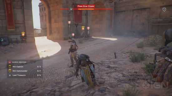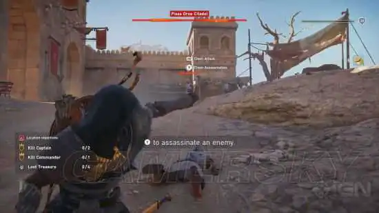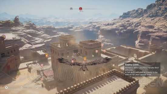 当等级相差太多时,这些敌人将会非常难对付。玩家可以透过老鹰伙伴赛努来侦查区域并标记敌人,若敌人头上有显示红色的骷髅头,代表该敌人的等级与能力高出男主角巴耶克非常多,但如果是等级相近的情况下,标记敌人时头上将会显示敌人的等级。若有显示皇冠的符号,则代表该敌人是领导阶级,队长等级的敌人有较高机率掉落更优秀的高等级装备。