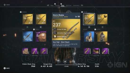 在游戏中玩家能够随著进度获得许多不同的装备,其中包含工具、盾牌、座骑与服装等,而近距离武器与远程的弓箭都可以同时装备两把并在游戏中切换。而如传奇等级的高级武器除了攻击力之外,也会附加如爆击率增加、加快肾上腺素汇聚、连段提升,或者是火焰伤害与立即衝锋等独特的能力及技能。袖剑虽然不用更换,但可以透过收集材料来升级,游戏中使用的箭矢也同样需要材料来制作。
