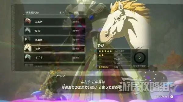 马泷可以用来强化马匹的能力值,强化需要特定的料理,所以需要额外收集材料再来制作。最高可以将马培养到★5。