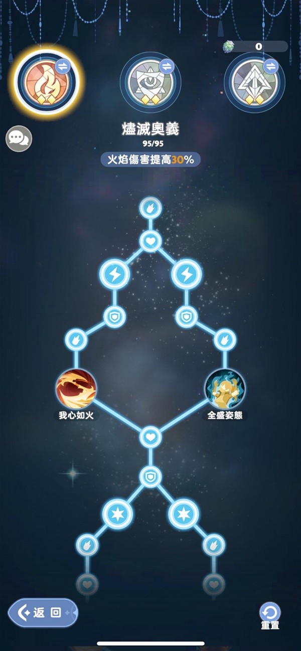 他最大用处是减影焰零式冷却,配合第二层的30秒后减10%。 可以极大提升伤害,还有各种连动。 其次是降低超负荷态的冷却,缩短输出疲弱期。 然而,这一切是需要搭配二转专属四招影焰,至少都有紫色4星,有额外冷却减少基础,才能搭配,要不然只靠天赋,其实冷却没有降多少。所以推荐专属招式有紫4星之前先选用其他天赋