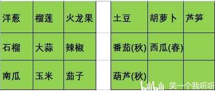 二、横向看分别是春夏秋冬的作物分类。(例如:春天种洋葱,榴莲,火龙果 1:1:1 夏天种石榴 大蒜 辣椒 1:1:1)