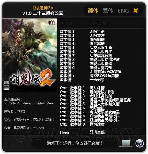 简体、繁体、English,可以切换语言 (切换语言后修改器将把该语言设置为默认语言)