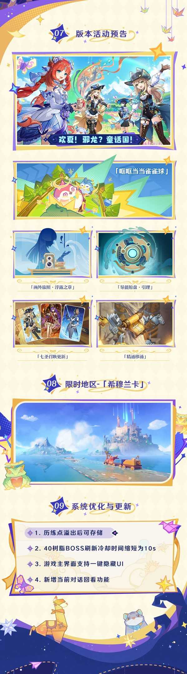《原神》4.8版本将迎来夏日的限时地图活动——欢夏!邪龙?童话国!,除此之外还有很多其他的新内容。下面为大家带来《原神》4.8前瞻节目回顾长图,一起来看看吧。