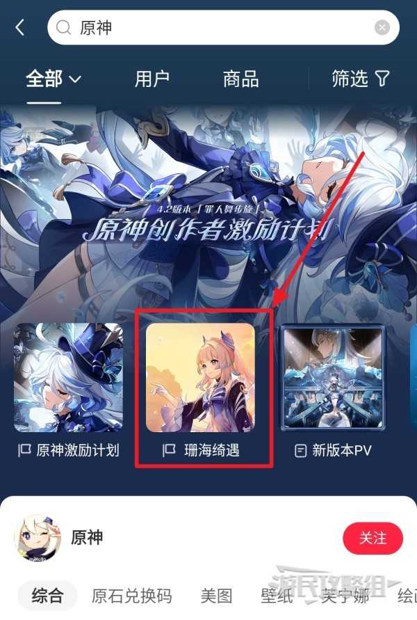 扫描本文最上方图片上的二维码,或打开小红书搜索原神,下方的【珊海绮遇】即可进入活动页面。