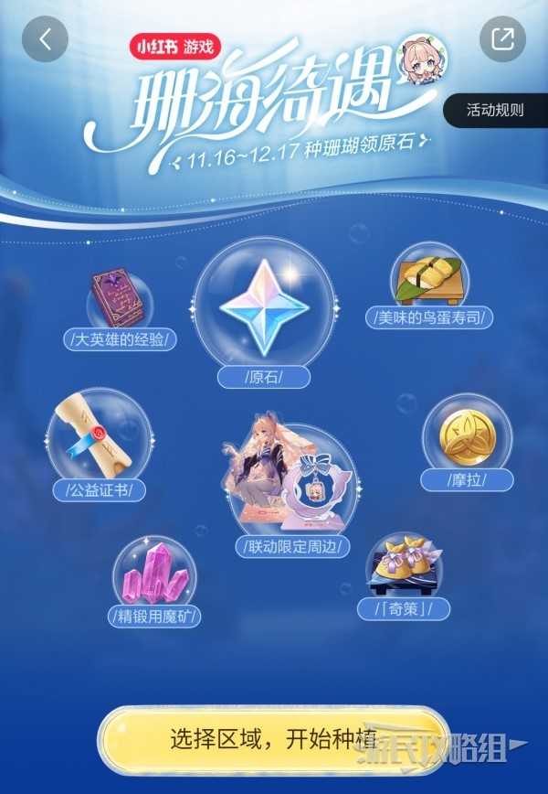 进入活动页面后,第一个活动就是种珊瑚。首先可以根据喜好选择任意区域。